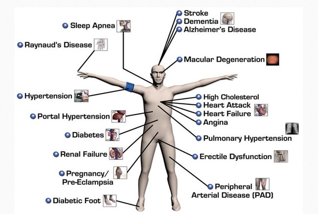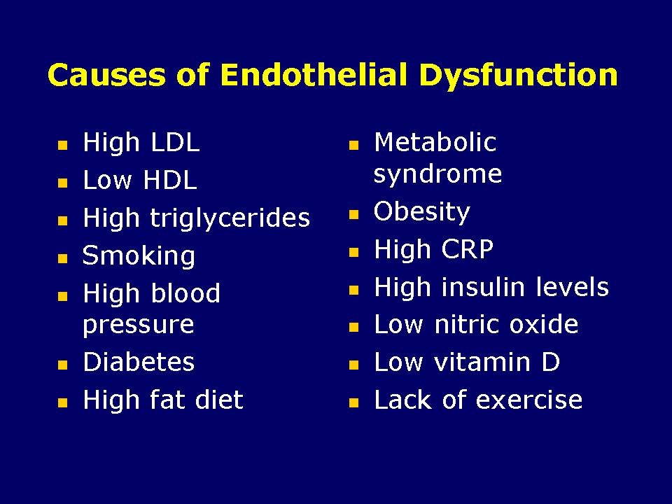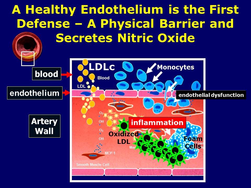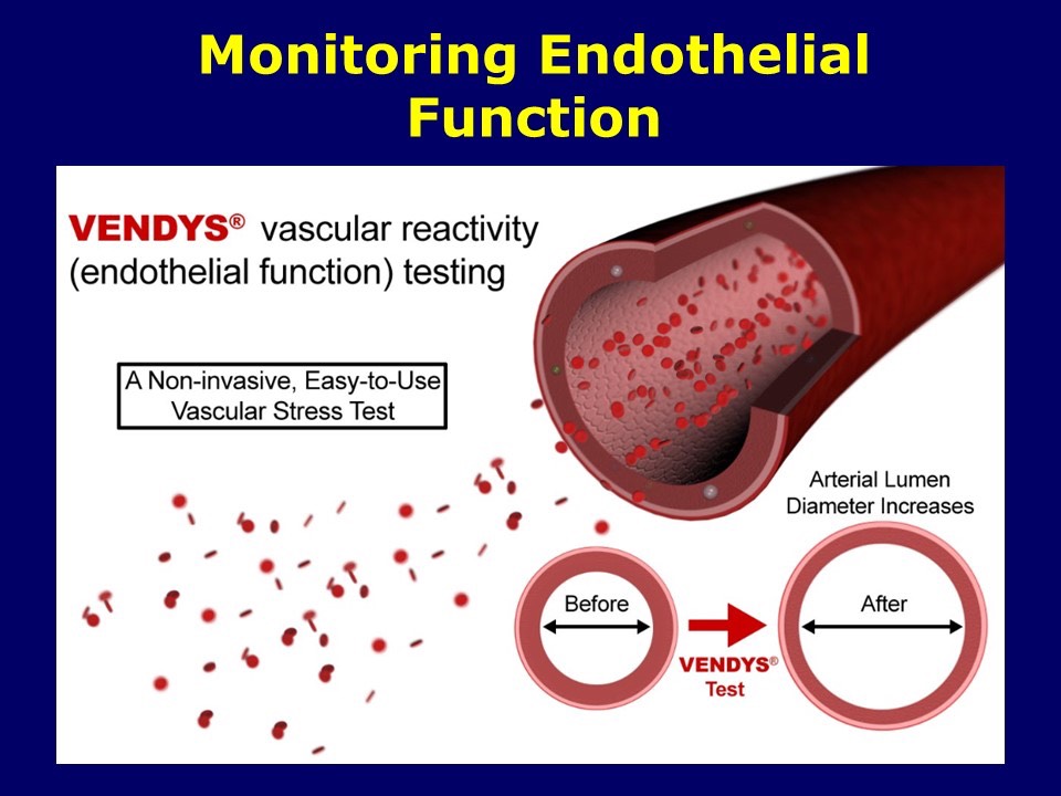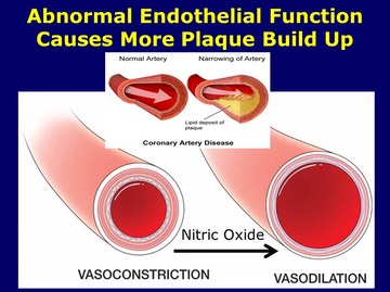Atherosclerosis (plague build up) and risk factors impair the ability of the endothelium to secrete nitric oxide. Reduced availability of nitric oxide causes the blood vessels to become slow to dilate and slow to increase blood flow, even become constricted instead. This response can be measured. A healthy endothelium is the first defense against plaque build-up.